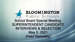 - School Board Special Meeting - Superintendent Interviews & Selection: May 5 (Conducted Remotely)