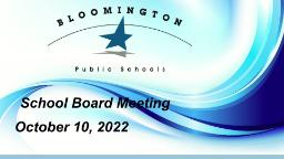 - School Board Meeting: Oct. 10